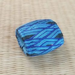 いつもよりずっと大きな土台を使用。外周が長くなり、模様によってはかがる時間が倍以上にもなります。今回は、飛び数の大きな矢羽根模様で。針山部分はHANAtemariWorks様のてまりを差し込んでます。 |