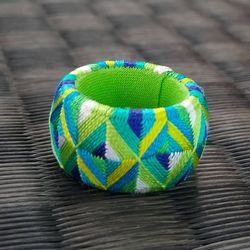 「七日方(ななひかた)」と名付けました。最後の糸は蛍光色です。 |