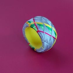 ゆびぬきでは色を増やしていくにつれ、模様が細かくなっていくため、角度によってはきらきら輝いて見えます。