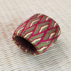 青海波の帯留め。茶、黄、赤で落ち着いた組合せ |