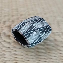 縞合わせの帯留め。グレー、黒でシックな仕上がり |