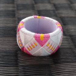 「七日方(ななひかた)」と名付けました。最後の糸は蛍光色です。 |