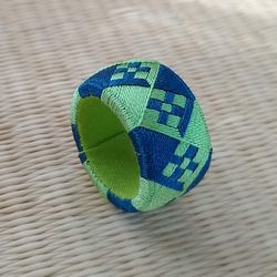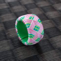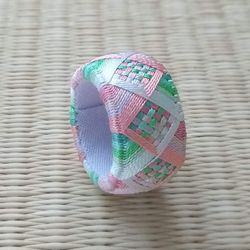 細かな市松を囲む波。緑とピンクで春っぽく。 |