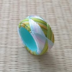 淡めブルーとレモンで涼しげに。ラメ糸も使用 |