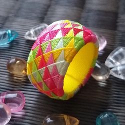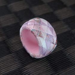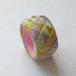 ゆびぬきでは色を増やしていくにつれ、模様が細かくなっていくため、角度によってはきらきら輝いて見えます。