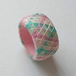 パステルカラーのミントとピンクで柔らかに。ラメ糸も使用 |