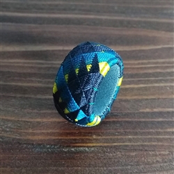 かがり始めるスタート位置が5ヶ所になります。コマ数を増やしていくことで、三角形がより小さくなり、角度をかえるごとに糸がキラキラと見えて美しい模様です。